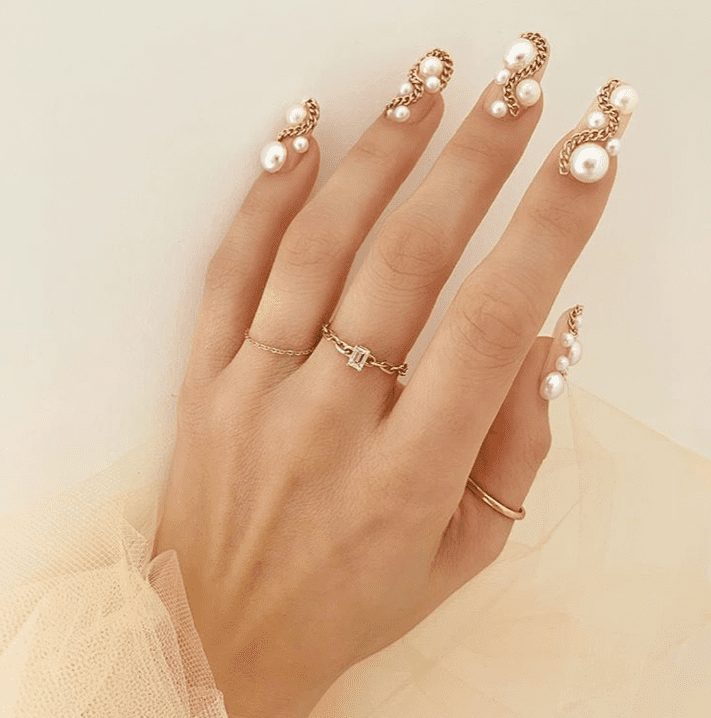 E, la manicure perfetta è, a quanto pare, quella creata da Betina Goldstein, tra le artiste, in tal senso, più seguite su Instagram; mente creatrice, tra l’altro, di molte preziose nail art, firmate Chanel. Ispirarsi alla sua opera, d’altronde, non è complicato. Basta fornirsi degli strumenti adeguati: una buona base trasparente ed una serie di accessori gioiello, da applicare sulla lamina, ovviamente ‘sbrilluccicosi’.