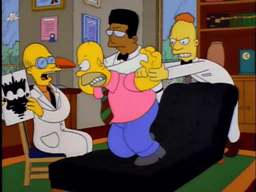 La vicenda esordisce con la camicia bianca di Homer che viene tinta di rosa, a causa del cappellino rosso di Bart. Vedendolo indossare un capo tanto bislacco, il signor Burns comanda ad Homer di sottoporsi ad un esame psichiatrico. Come compensazione per l’onta subita, Homer chiede a Bart di sostenere l’analisi al suo posto. Bart accetta, provocando, però, come risultato, l’internamento del padre presso un istituto.