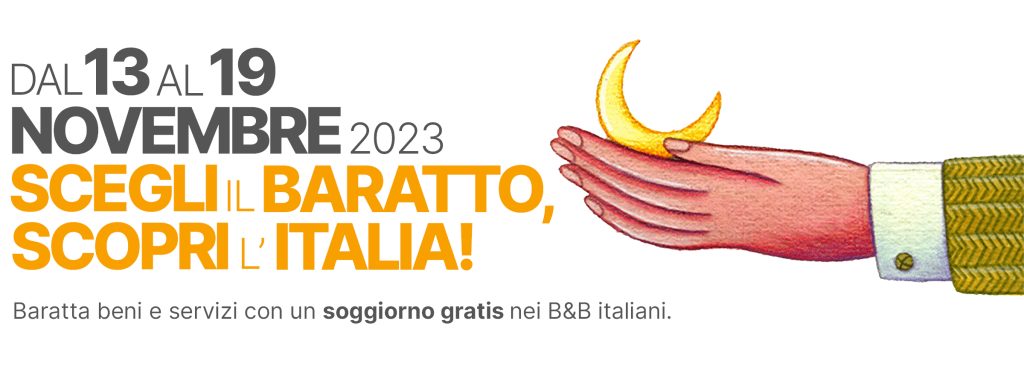 Soggiornare… gratis, o quasi, anche solo per la durata di un week-end. Una fuga dalla routine o una gita fuori porta, inaspettatamente ‘regalata’. Tale è, almeno nelle intenzioni, l’iniziativa promossa da Bed-and-breakfast.it – vale a dire la settimana del Baratto – che permette, a chi desideri approfittarne, di godersi un soggiorno, fino al 19 novembre 2023, praticamente spesato. Basterà – in pratica – selezionare una tra le numerose strutture affiliate al sito, sparse per la Penisola.